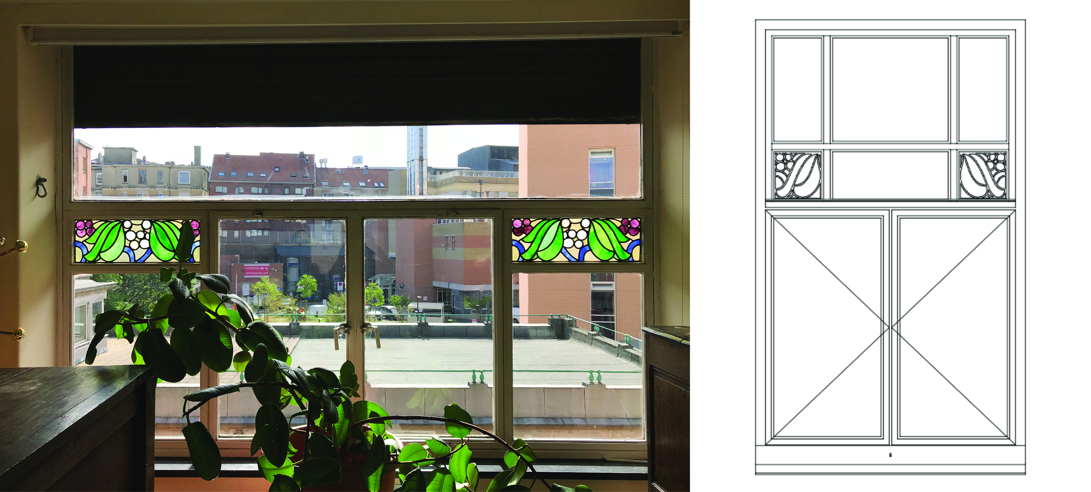 Les châssis d’origine, en acier laminé à chaud dit « à gradins », munis de simples vitrages transparents, se composaient de cadres ouvrants et fixes, insérés dans un grand châssis de fenêtre en acier, montés dans un encadrement en bois. L'objectif du projet est conserver et restaurer les châssis d'origine encore existant et de reconstituer les châssis disparus sur base des plans d'archives et les châssis conservés tout un intégrant une amélioration thermique. Les pistes d'amélioration ont été testées lors de l’exécution du PROTOTYPE de reconstitution de châssis en 2022. Les testes AEV réalisés en laboration ont donnés de très bons résultats pour le prototype de châssis reconstitué à l'identique intégrant un double vitrage mince et une triple frappe.