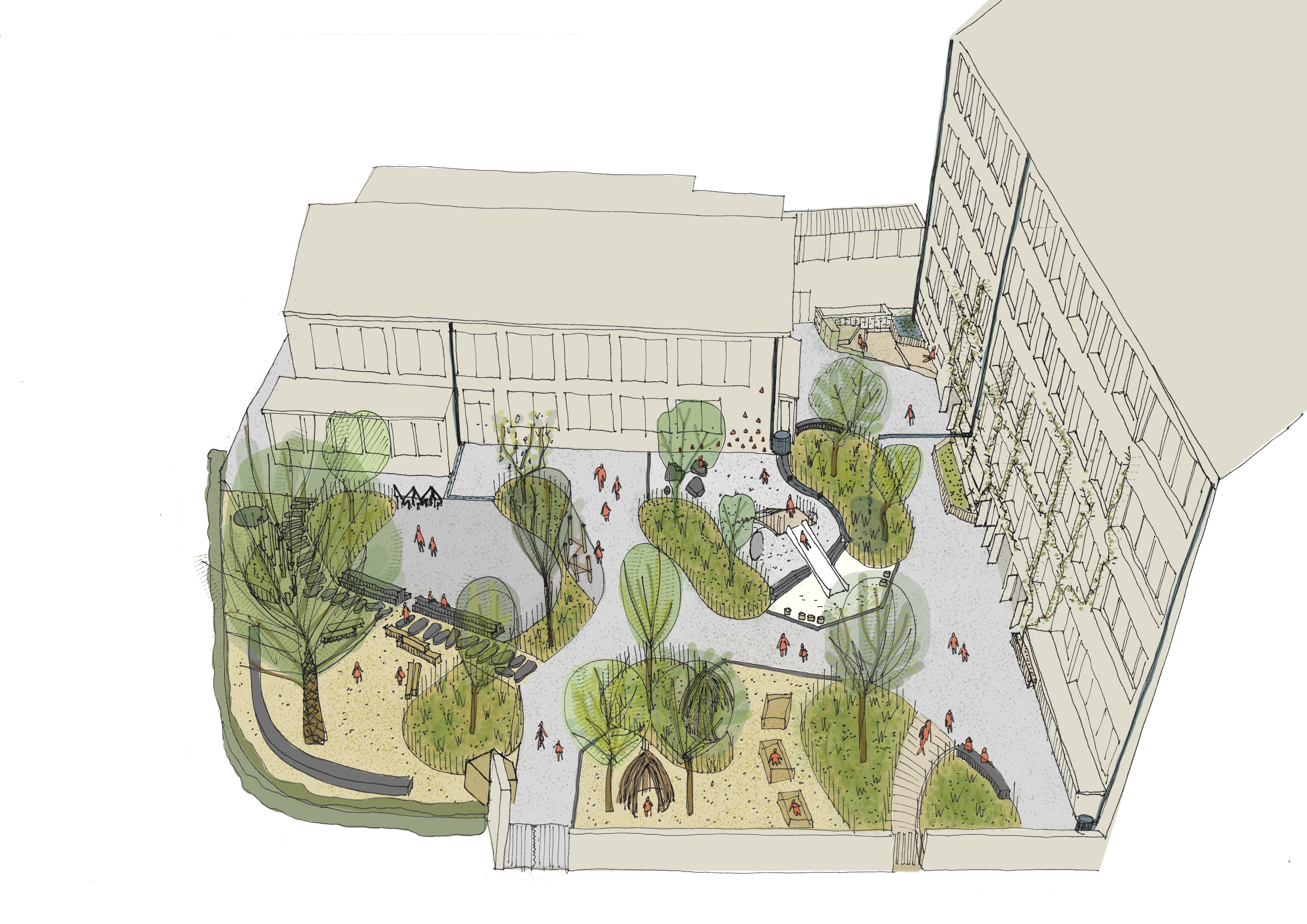 Le projet « Opération Ré-création » est un projet de transformation initié en réponse à l'appel à projets lancé par Bruxelles Environnement, visant à réaménager les cours de récréation de 20 écoles maternelles, élémentaires et secondaires. Ce projet s’articule autour de cinq axes principaux; le réaménagement spatial, l’intégration de la biodiversité à visée pédagogique, l’ouverture sur le quartier, la conception inclusive et accessible, et l’adoption de pratiques durables. S’inscrivant dans le cadre de Bubble.brussels, cette initiative entend promouvoir le bien-être physique, mental et social des enfants, la prévention des addictions, la réduction des risques, et sensibiliser aux stéréotypes de genre.
